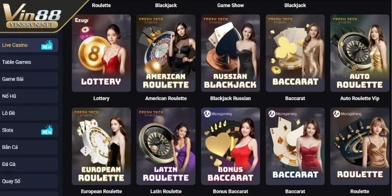 Danh Sách Các Trò Chơi Casino VIN88 Hấp Dẫn Nhất