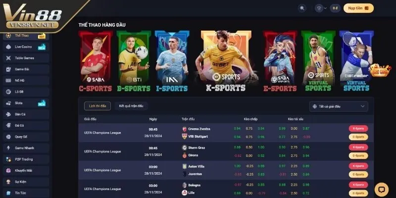 - Siêu phẩm khác: Bên cạnh đó, VIN88 còn thu hút hội viên với những sảnh chơi độc đáo như thể thao, bắn cá đổi thưởng, đá gà, esports, đáp ứng nhu cầu giải trí đa dạng của mọi thành viên.